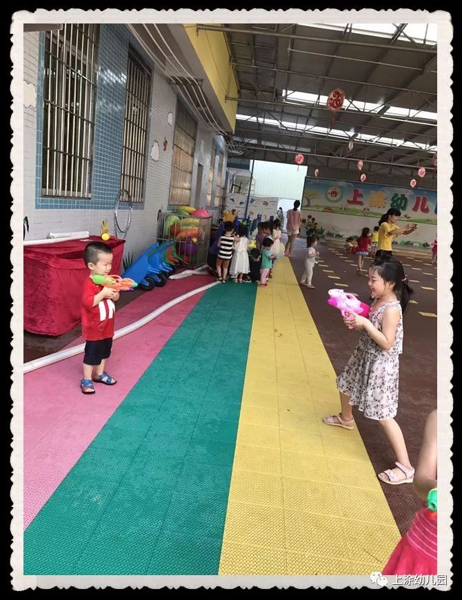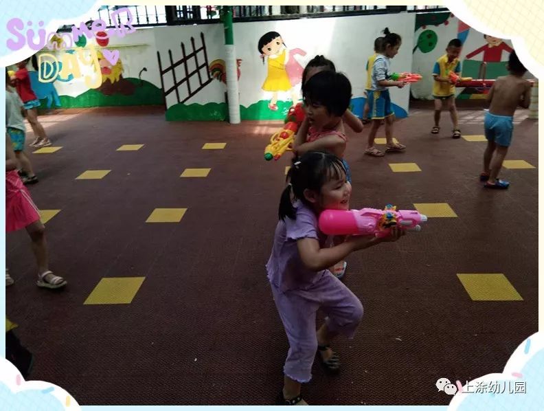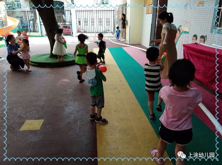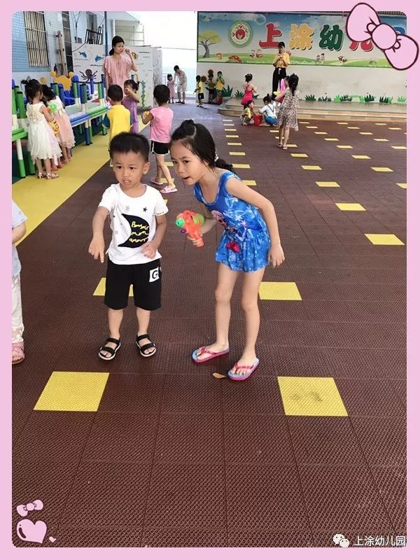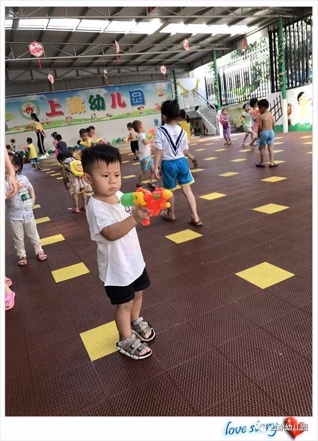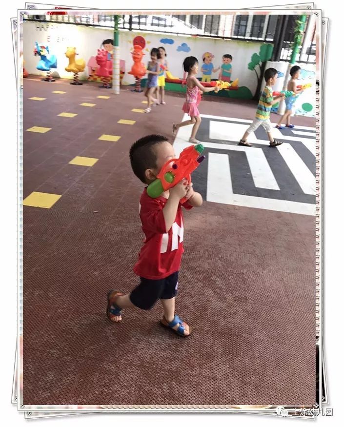 今天,小朋友玩得不亦乐乎。看完表演,宝贝们吃了爸爸妈妈给宝贝们制作的美味又好看的食物。下午,我们全园进行了打水仗。