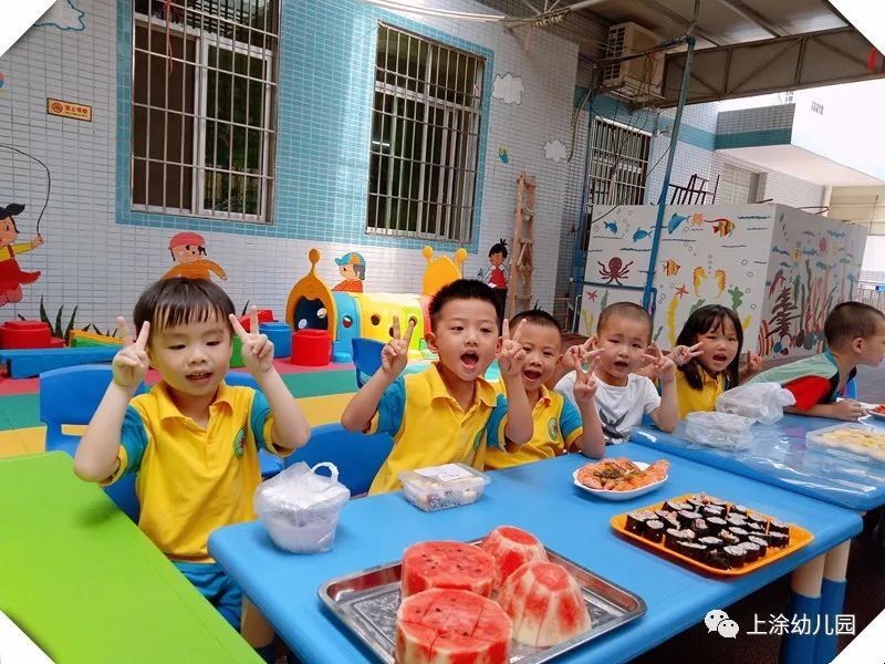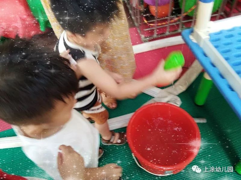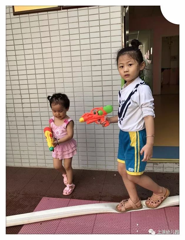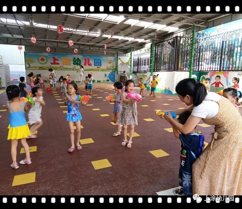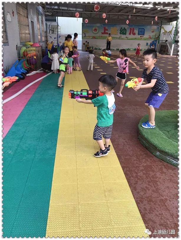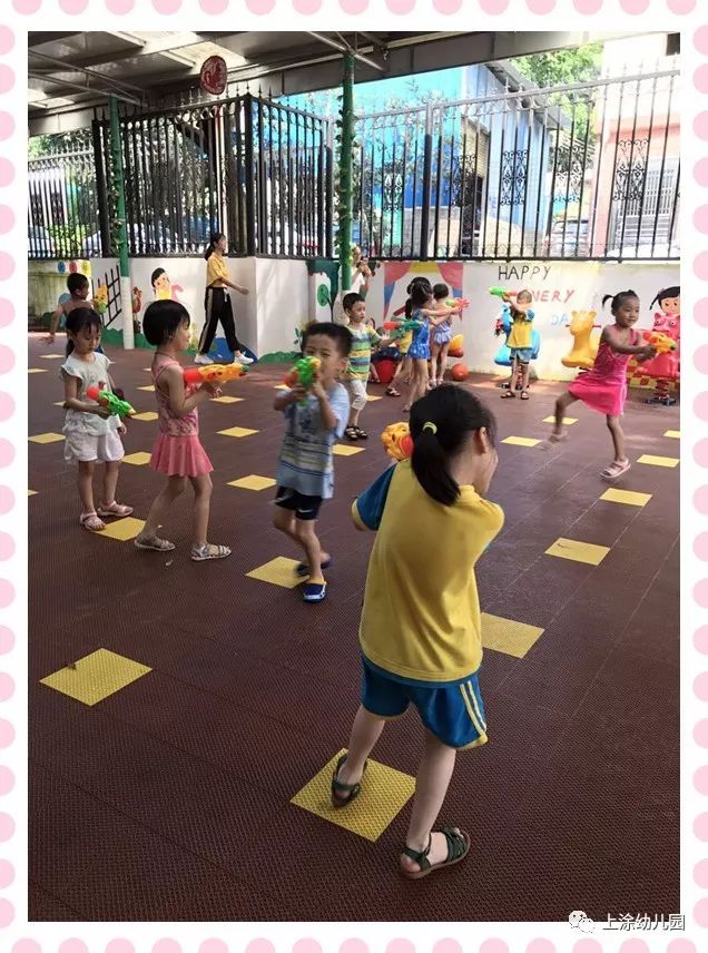 今天,小朋友玩得不亦乐乎。看完表演,宝贝们吃了爸爸妈妈给宝贝们制作的美味又好看的食物。下午,我们全园进行了打水仗。